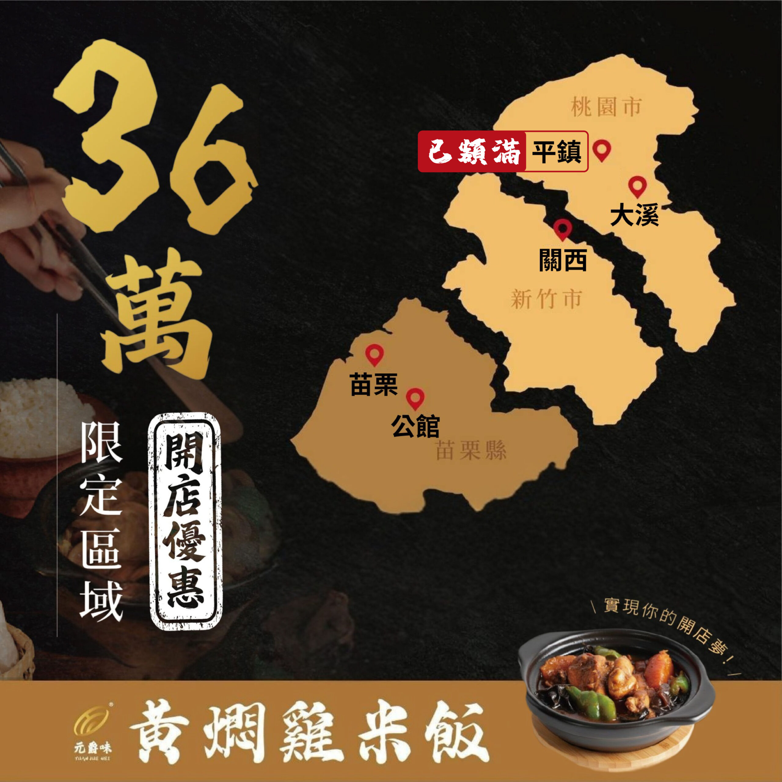 元爵味黃燜雞米飯自 2019 年於桃園市桃園區創立第一家門市,憑藉獨特風味與堅持品質,迅速打開知名度。